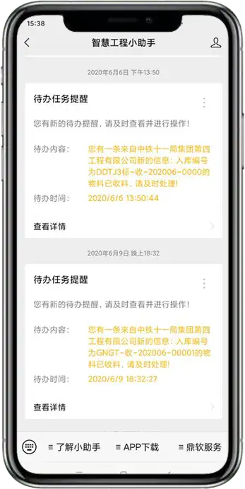 入库通知:项目部收料员可通过PC端和APP进行收料。